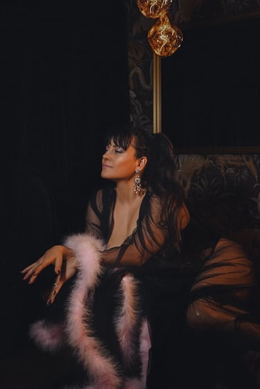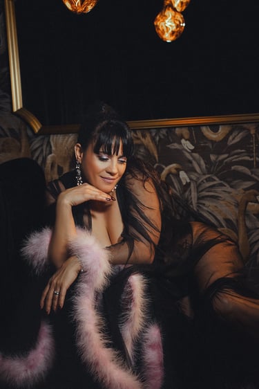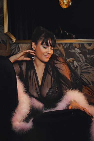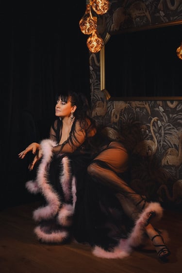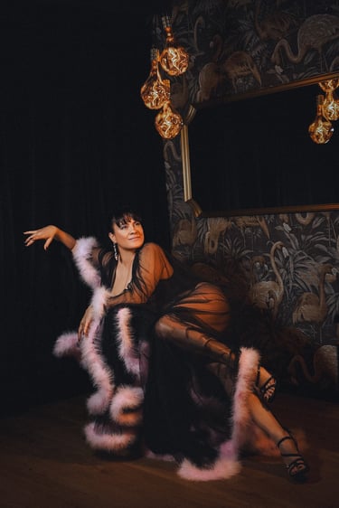 À travers le cabaret et le burlesque, j’explore une forme de développement personnel artistique, faite d’audace, de découverte de soi et d’élan vital. C’est une invitation à oser être pleinement soi, à embrasser ses multiples facettes et sa singularité.