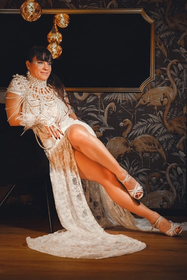 À travers le cabaret et le burlesque, j’explore une forme de développement personnel artistique, faite d’audace, de découverte de soi et d’élan vital. C’est une invitation à oser être pleinement soi, à embrasser ses multiples facettes et sa singularité.